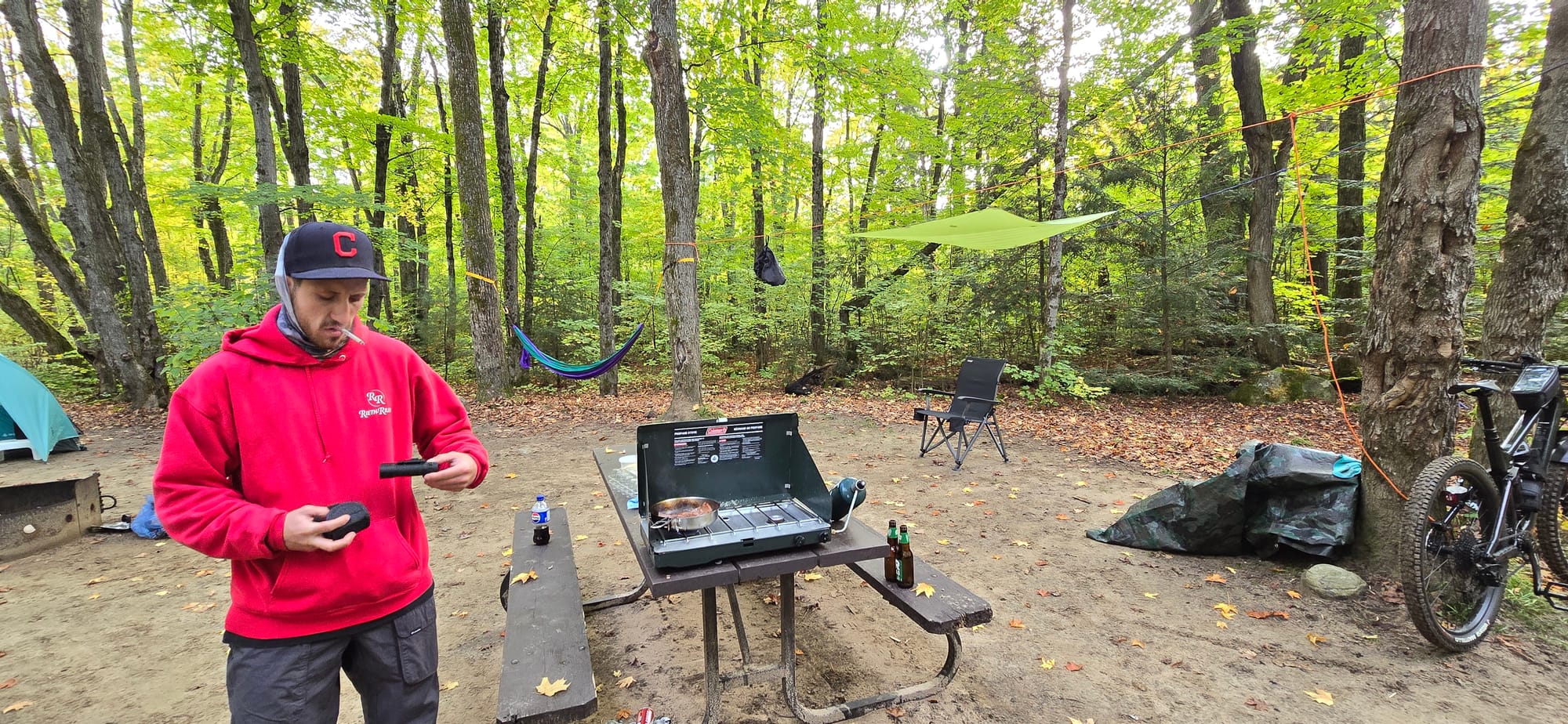 We packup pretty quickly. All the ice cubes in the cooler melted, but the ice blocks are still big blocks of ice. Ice blocks are definitely better. I check my tire pressure before leaving and they all seem to be at proper psi. Not sure why the sensors were going off last night.