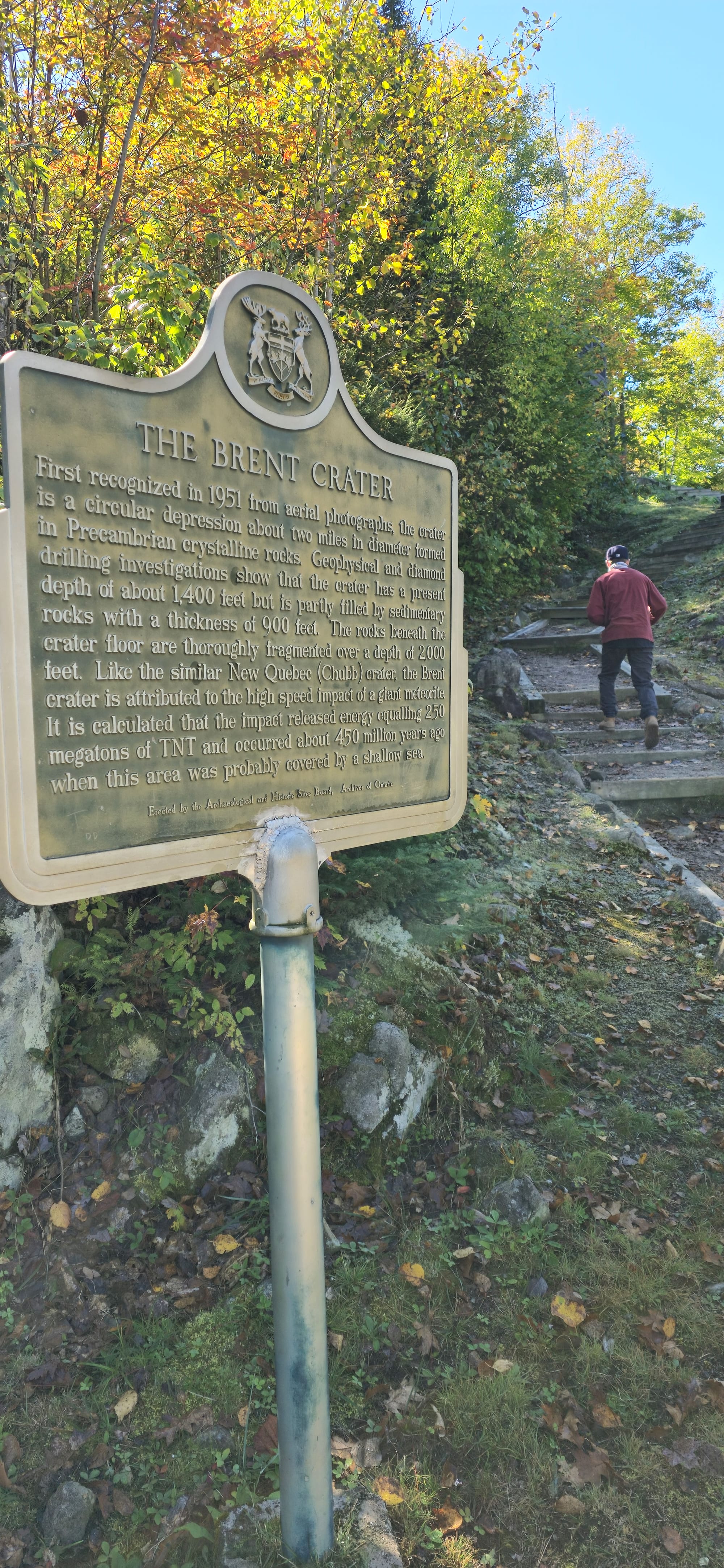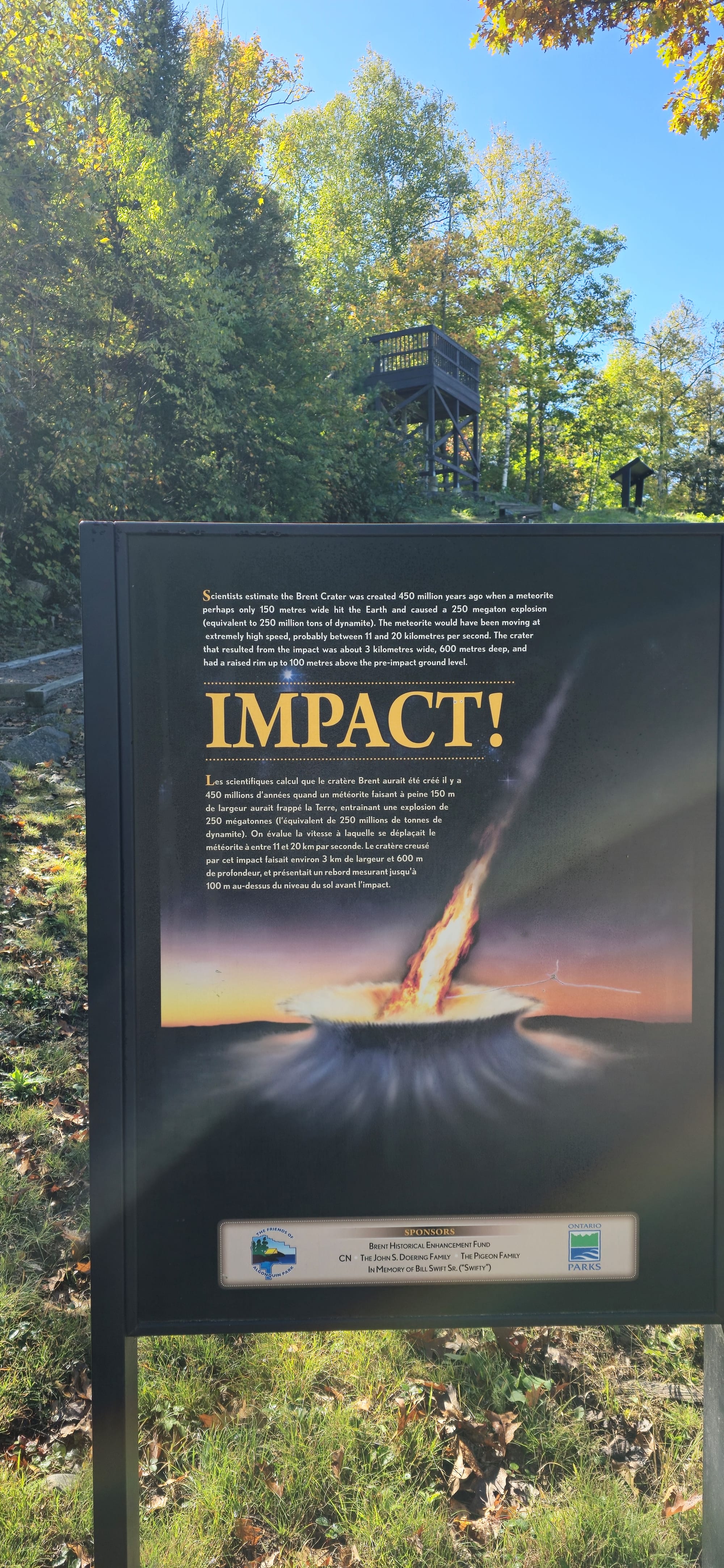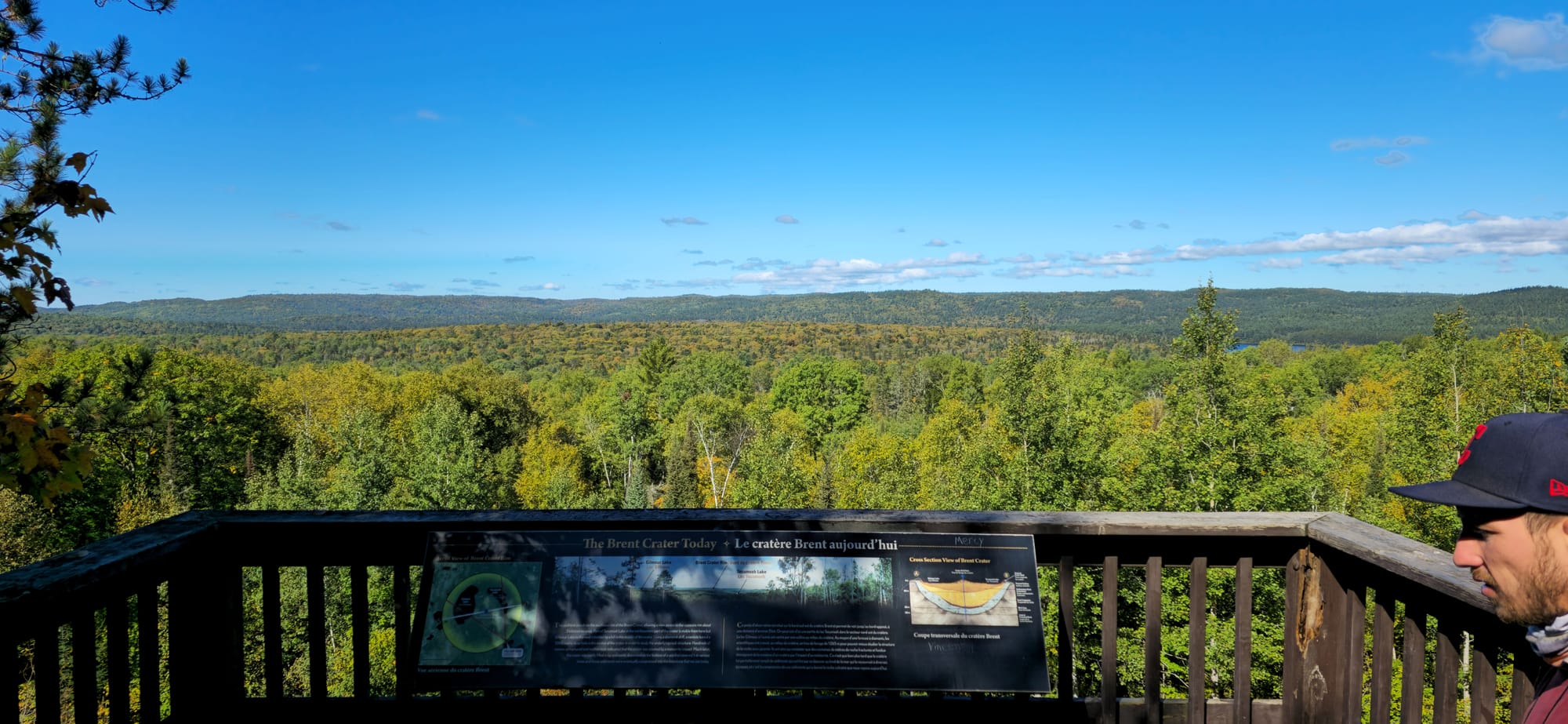 In search of Kayak/Canoe rentals, we started back for Mattawa but stopped along the forest road at the Brent Crater lookout, 8km from the campsite.