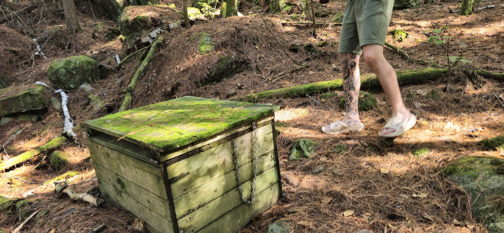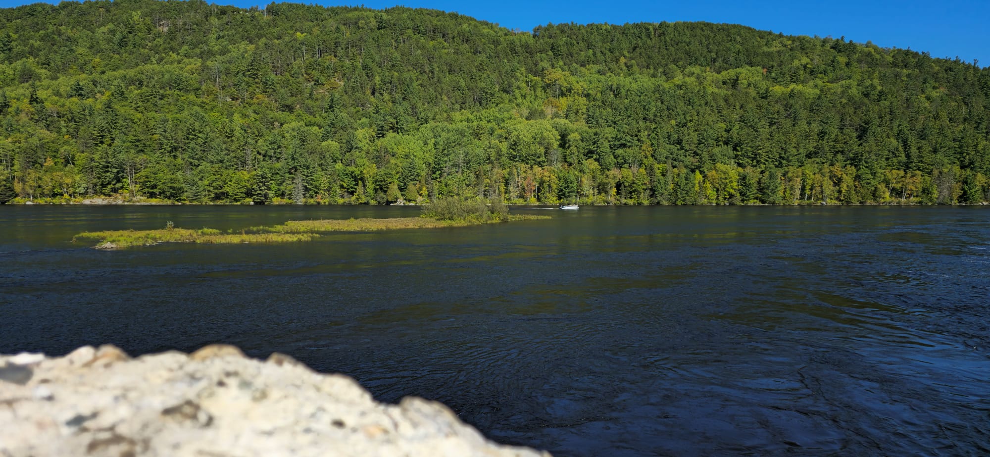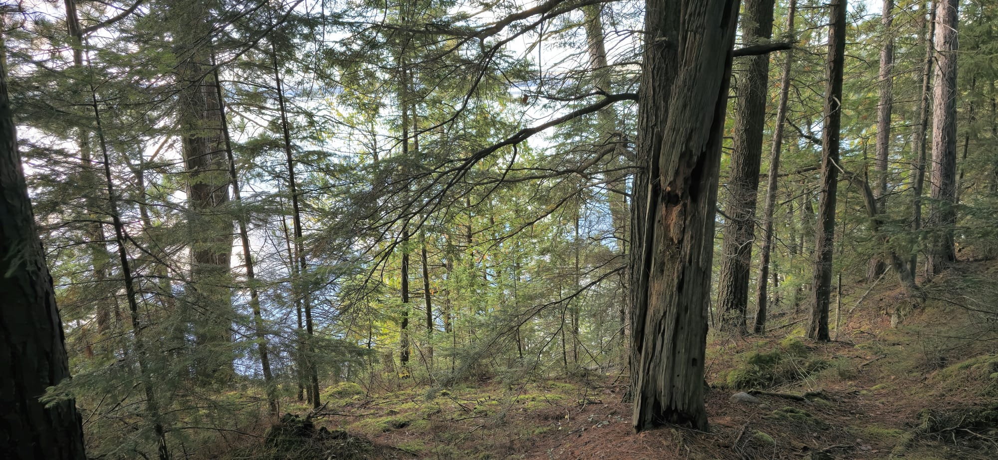 We spotted a cliff face sticking out of one of the larger islands in the lake. It looked cool so we stopped there to rest and check it out. I climbed up the incline leading to a dense forest area where squirrels fought.