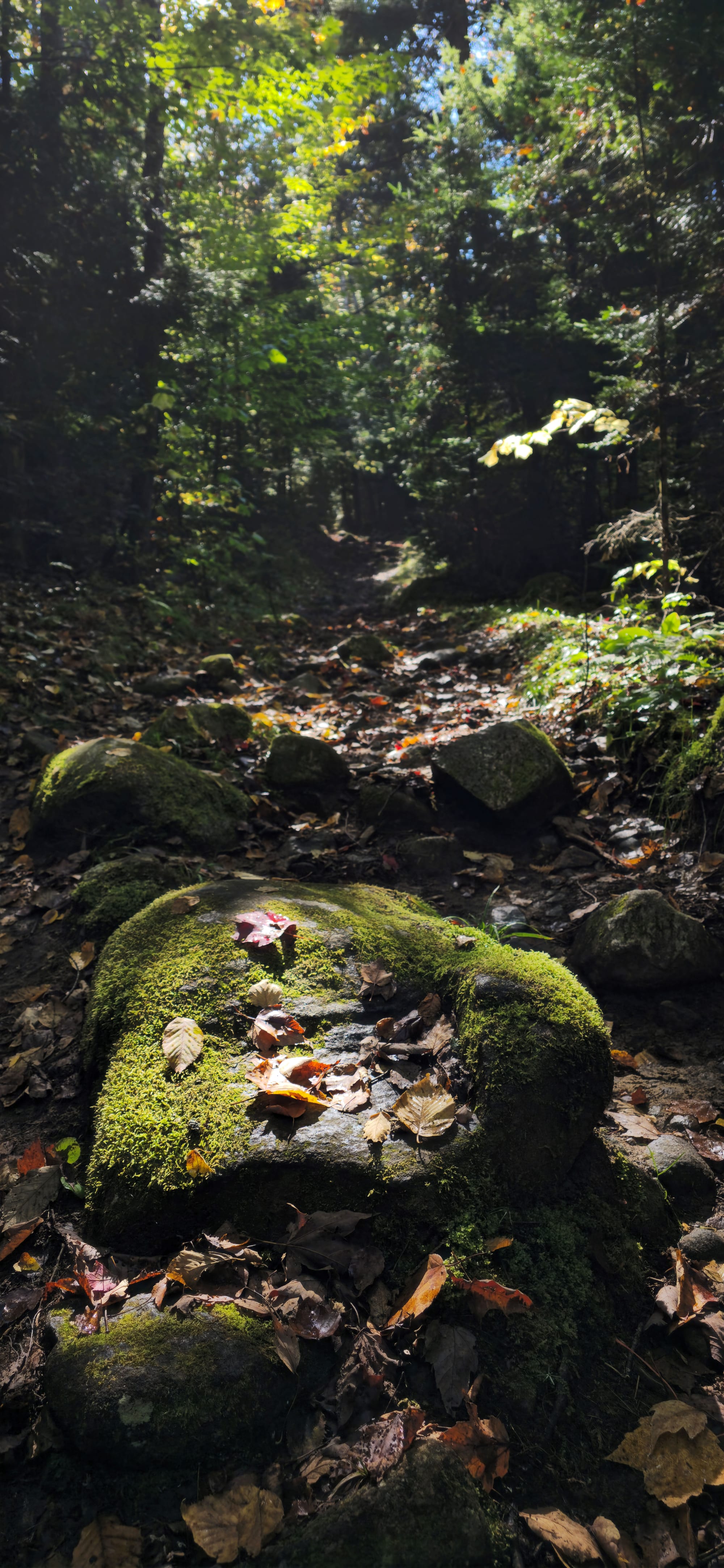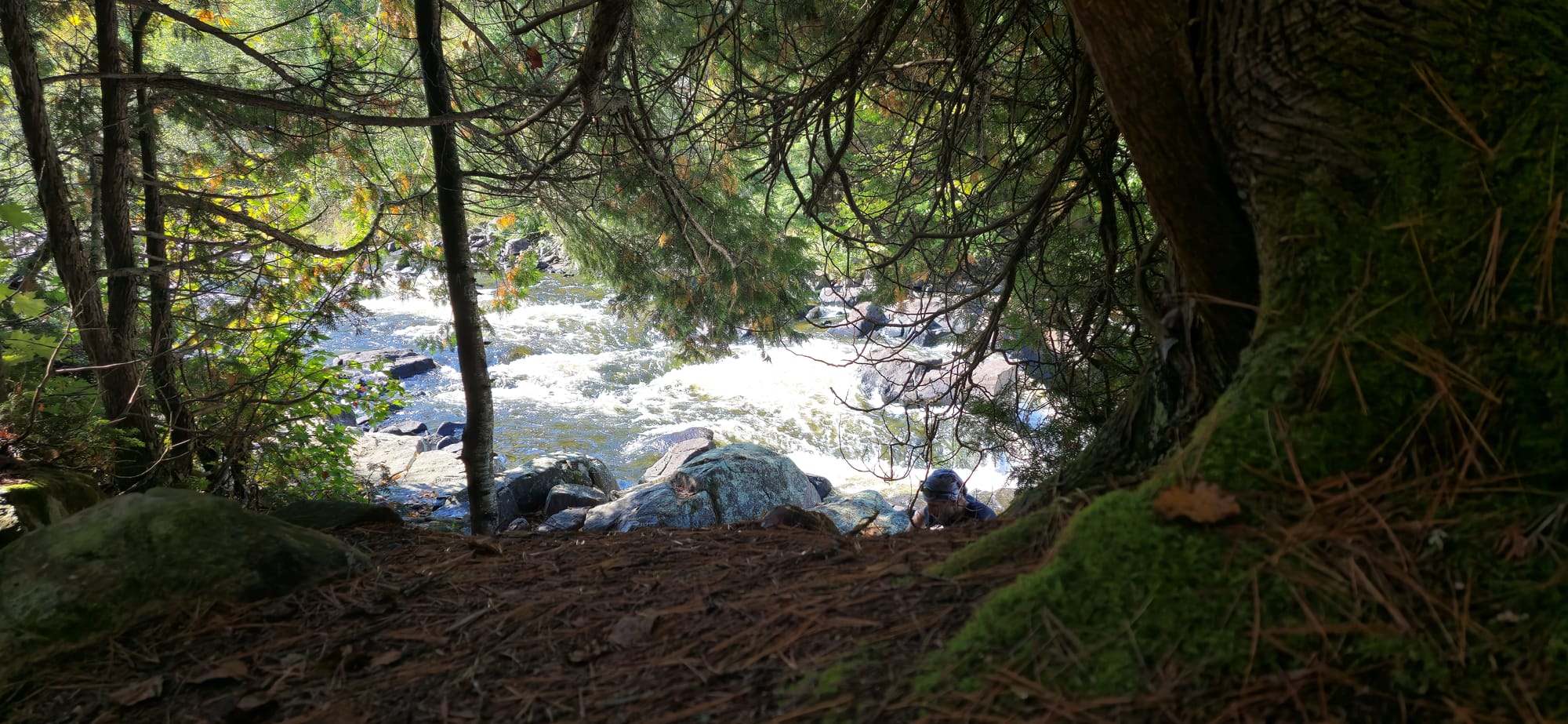 Our first time canoeing in a long time, and it turns out to be quite easy. We hiked up the portage path which came out at the top of the waterfall. Diverse mushrooms and moss were all over the main path. On one side, a steep decline leads into the Petawawa River, downstream from the waterfall.