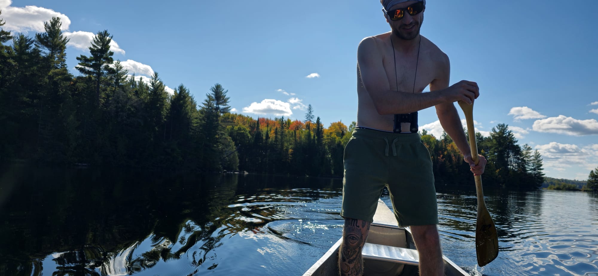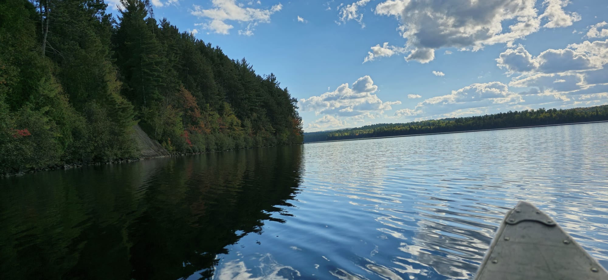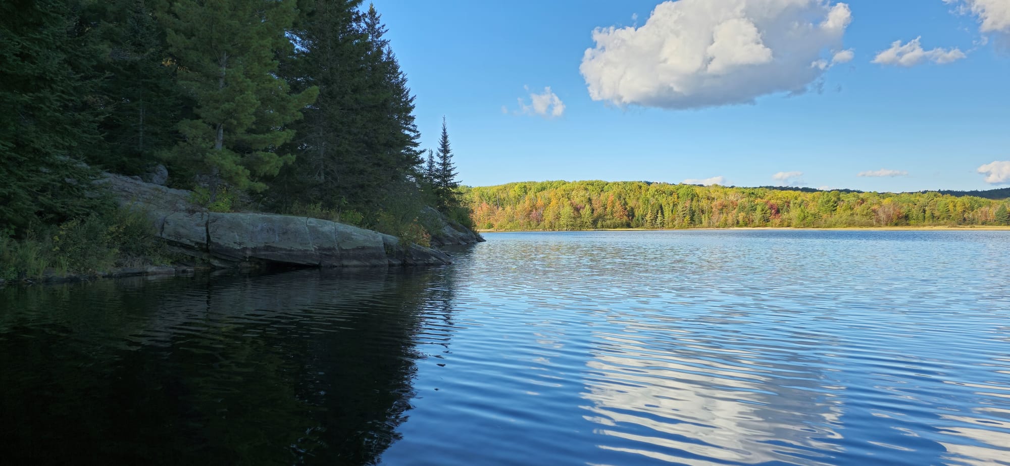 We kept paddling eastbound, checking out small islands and enjoying the sun's heat. Fall colours are just starting to settle in. "Leafers" - those who only come to Algonquin when the leaves change colours. That's what Mike called us.