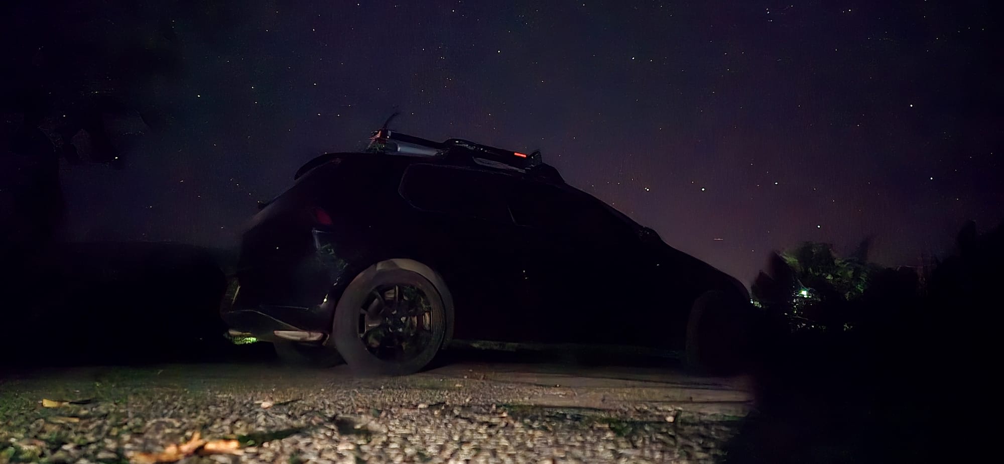 Last night here so why not drive out to Mattawa at 1am. I needed gas anyways. We pulled into the Mattawa Island Conservation Area and chilled. I tried to take some pictures of the car with the stars, but they didn't turn out that great. At first I used a multitool to prop the phone up and take pictures, then I switched the multitool for a Pepsi bottle.