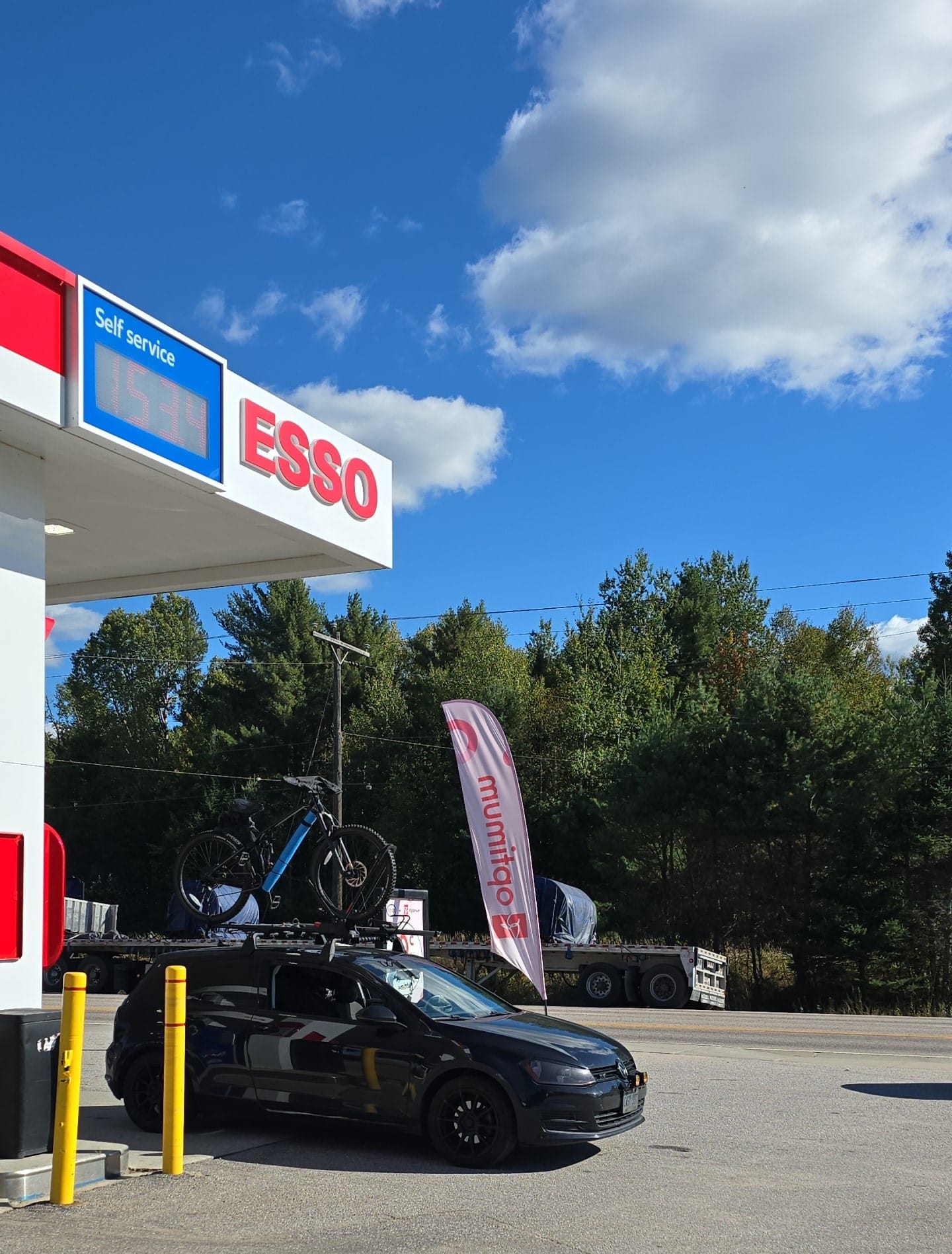 Again, trying to maintain fuel economy until Mattawa, we tailgate cars down the highway, trying to be more aero. I had already succumbed to the shame of having to call CAA, but with less than 5km of range left we arrive at the first Mattawa gas station.