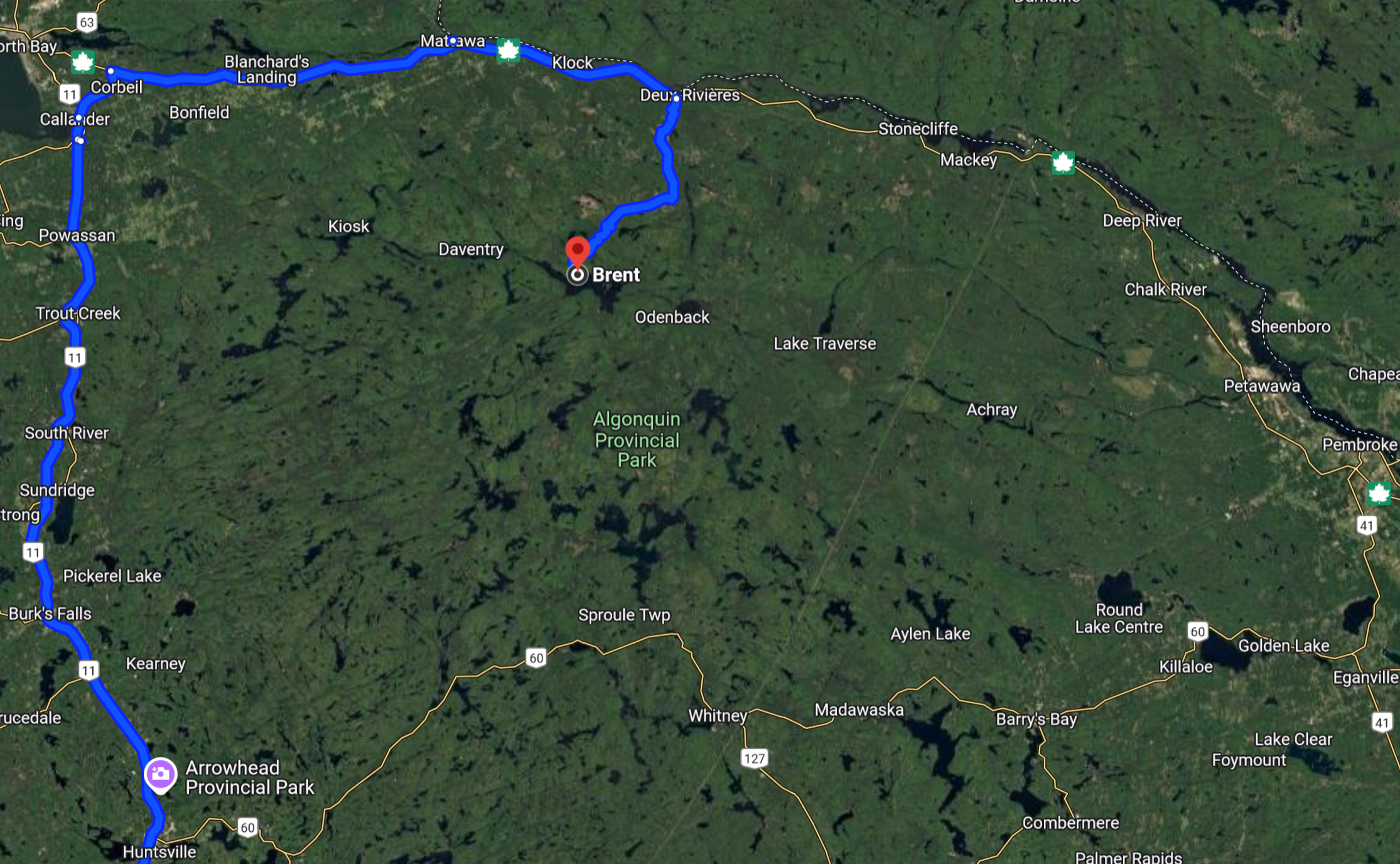 First trip to Algonquin region is in Brent from 09/27/24-09/30/24. Brent is located in Algonquin North and is accessed by a 40km forest road off Highway 17 which borders the Ottawa River. The closest gas station is in Mattawa, 71km from Brent.